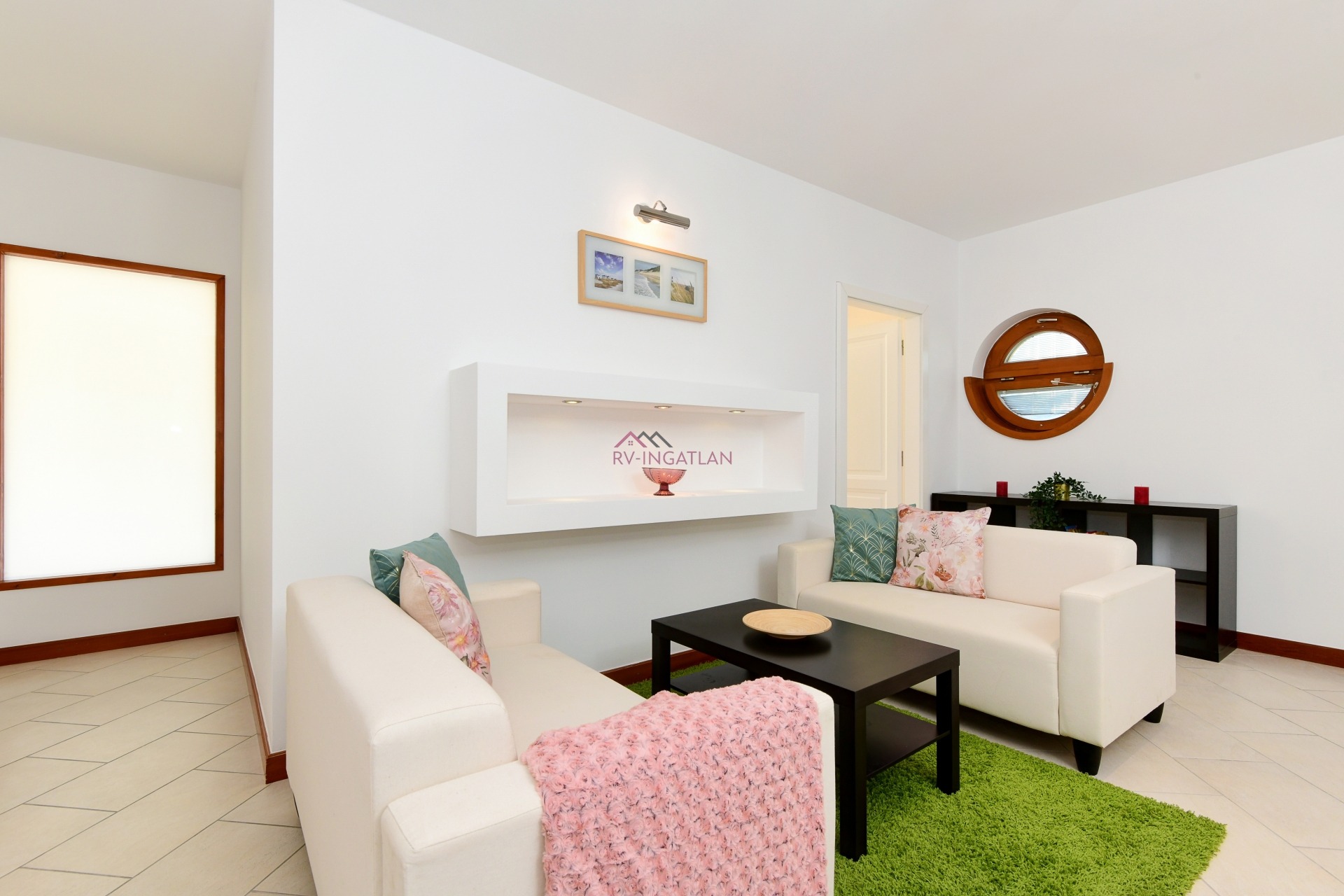 Entry level: 1 open space kitchen fully fitted, large living room with connecting terrace, 2 beedrooms, 1 wardrobe, 1 bathroom, 1 separate toilet and storage, pantry.